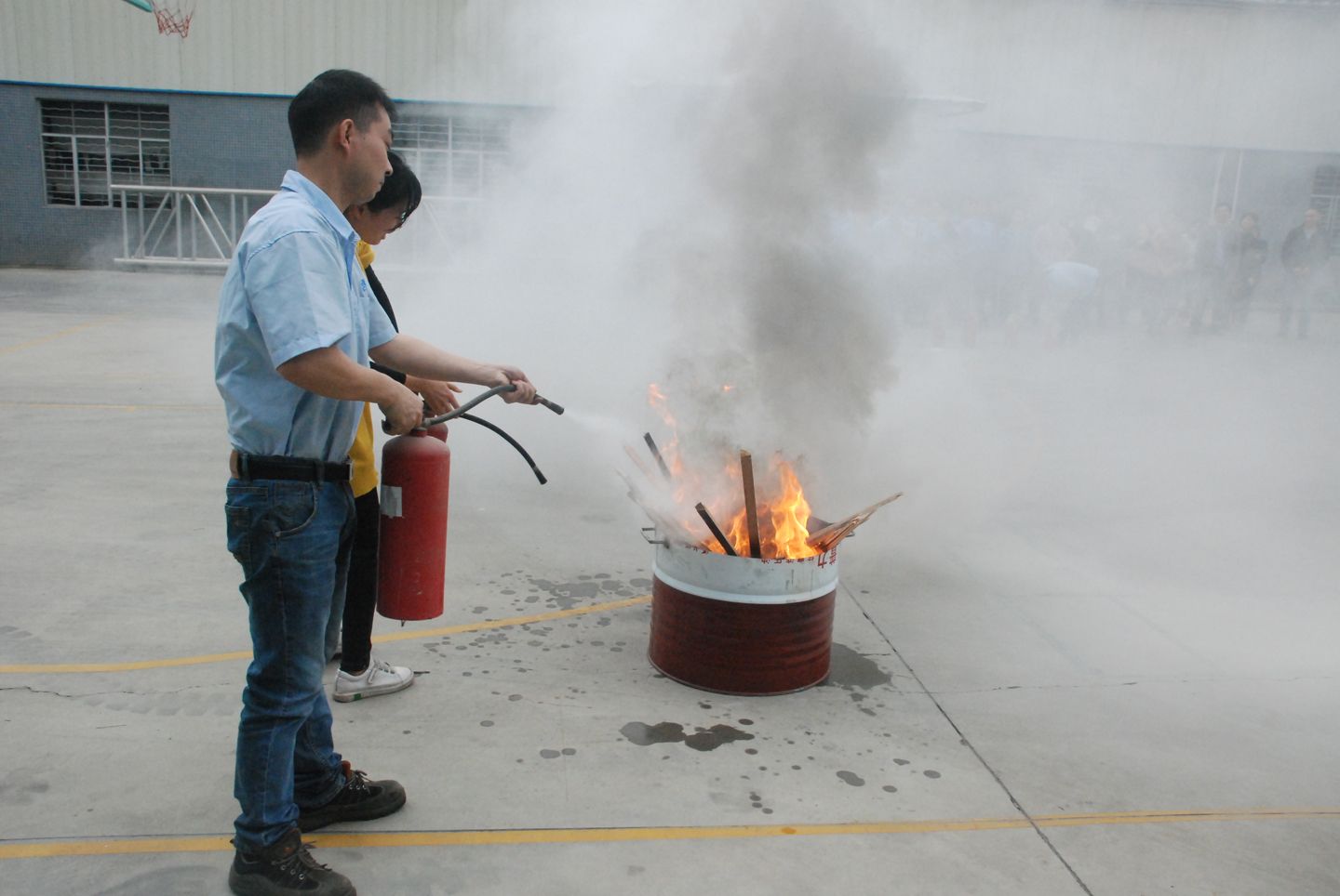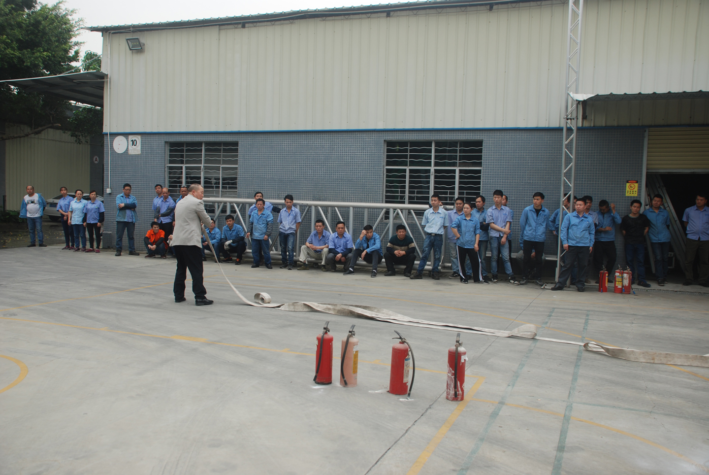 为了普及消防安全常识,提升员工应急防护自救和逃生能力,强化消防意识,做好厂区的消防安全工作,公司于2019年3月举行了“消防应急演练活动”。整个活动包括现场模拟火灾疏散、灭火器及消防栓的使用演练、安全急救等过程,共历时2个小时25分钟,全公司车间作业人员、办公部门人员等都参加了演练。