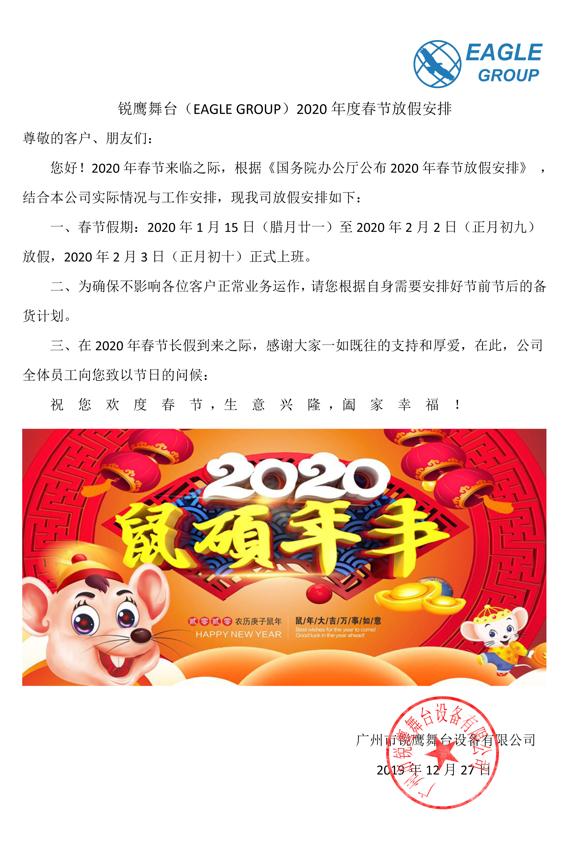 广州NG娱乐舞台(EAGLE GROUP)2020年度春节放假安排