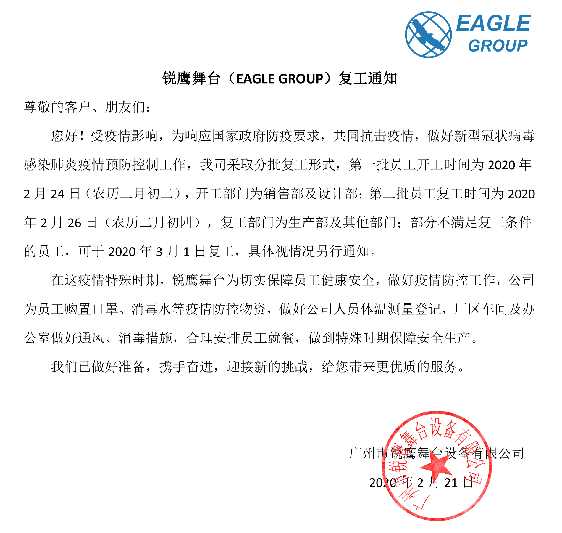 NG娱乐舞台(EAGLE GROUP)开工通知