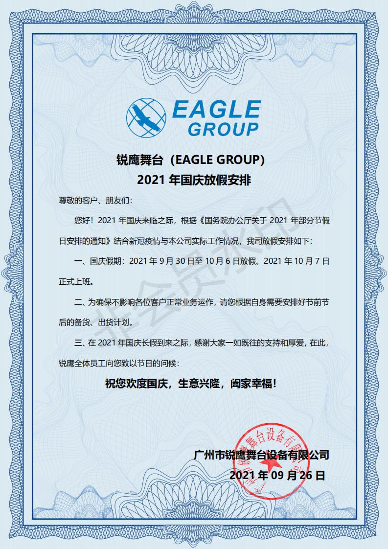 NG娱乐舞台2021年国庆放假安排