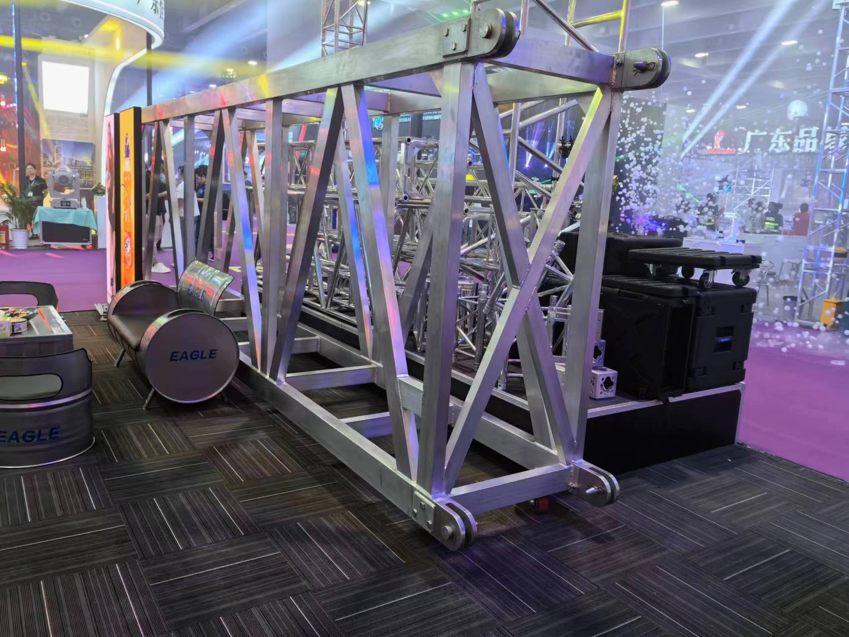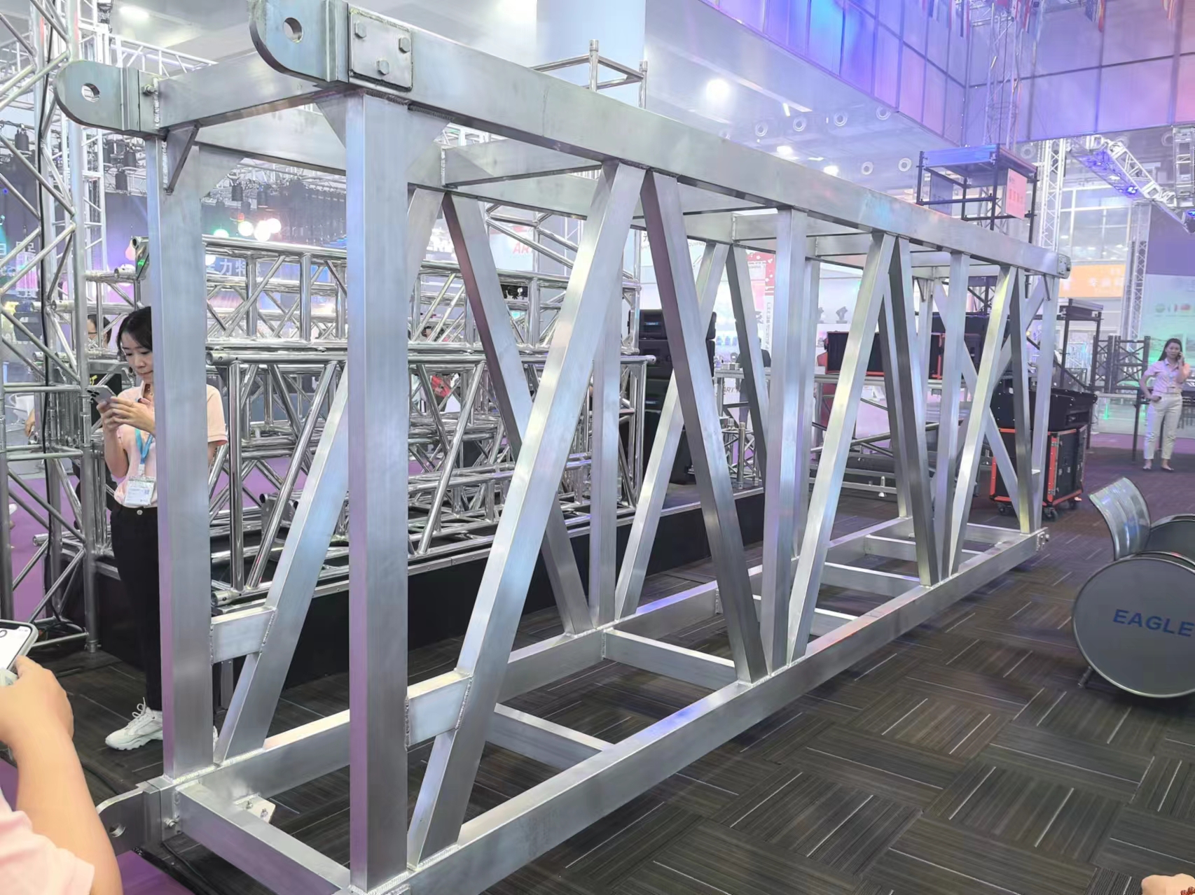 广州市NG娱乐舞台设备有限公司,创新研发、刷新纪录,打造超大型Truss架,跨度40米,超大承载22吨,放置了5天测试现场下沉值150MM,欢迎来厂参观!