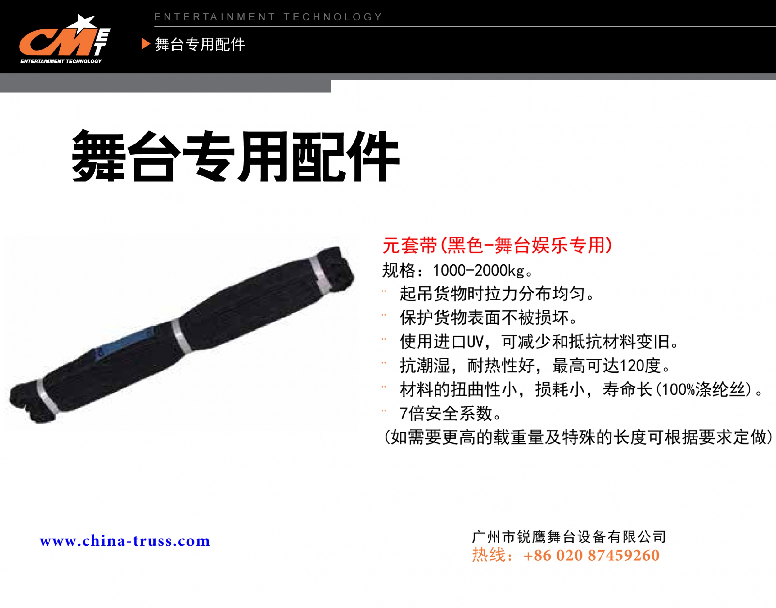 CM吊带重量轻,使用方便,承载面宽,可减少表面负荷的压力,方便被吊物体表面平稳,安全能力强,节约劳动效率,起重平稳、安全、强力高,色彩鲜艳。