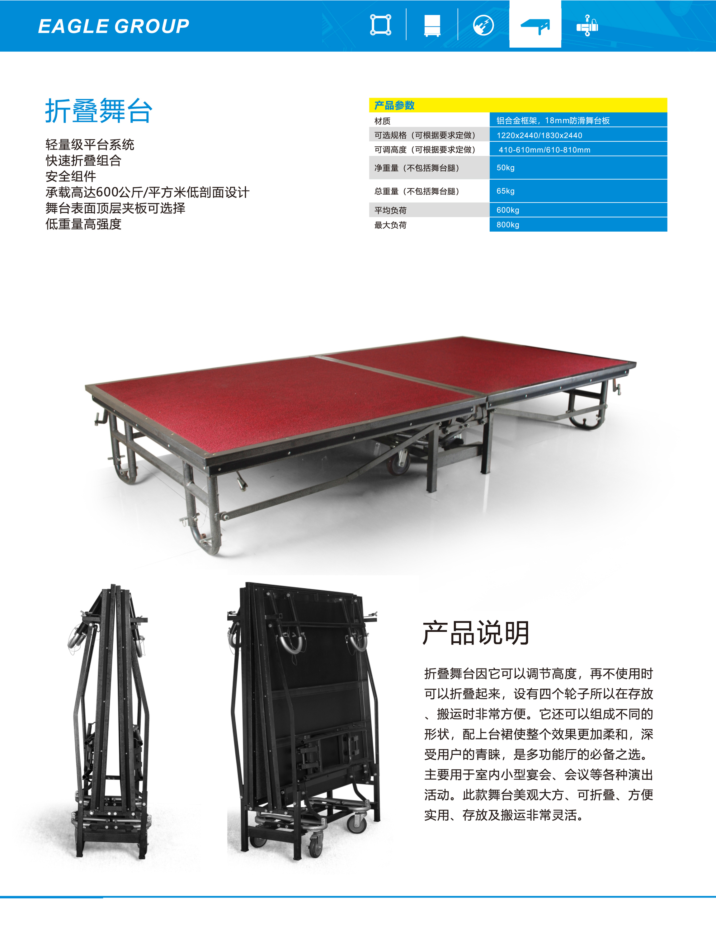 折叠舞台,酒店专用款,快速折叠组合,轻量级平台系统,低重量高强度。